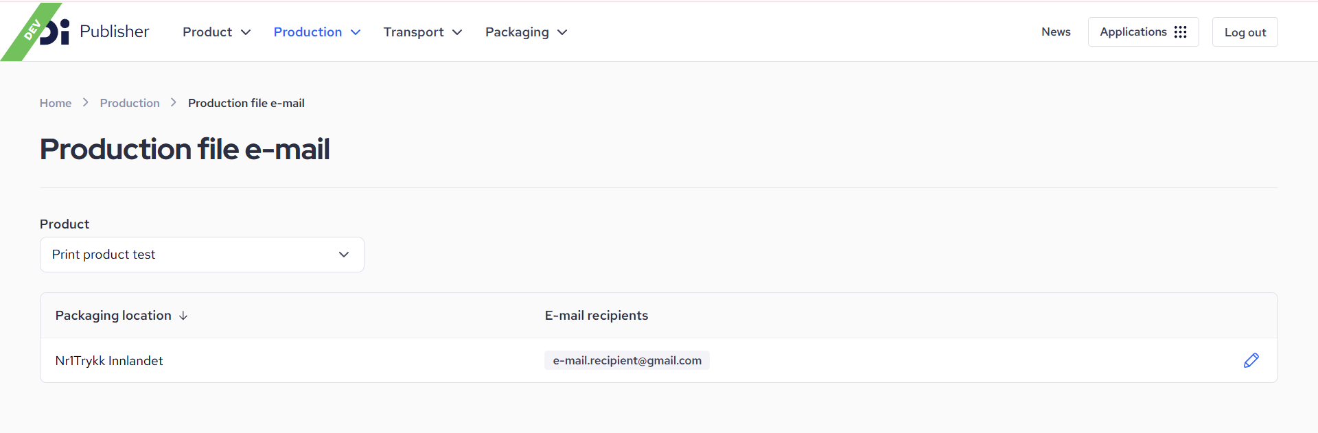Previously, you needed to contact DI support to set which e-mails should receive production files for your product. With this release, you now have the possibility to set these e-mails yourself in the DI Publisher application.